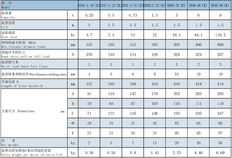 手扳葫蘆HSH型C(K)類具有以下特點: