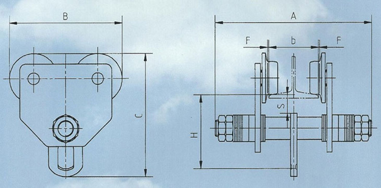 小車安裝時,應使吊環至左、右墻板內側的調整墊圈數量相等,但為了保證軌道側面與車輪輪緣之間的間隙F,必要時允許吊環兩內側的調整墊圈數差1薄片。對于最大或最小的工字鋼軌寬墻板外側或內側的調整墊圈數應不少于1片。