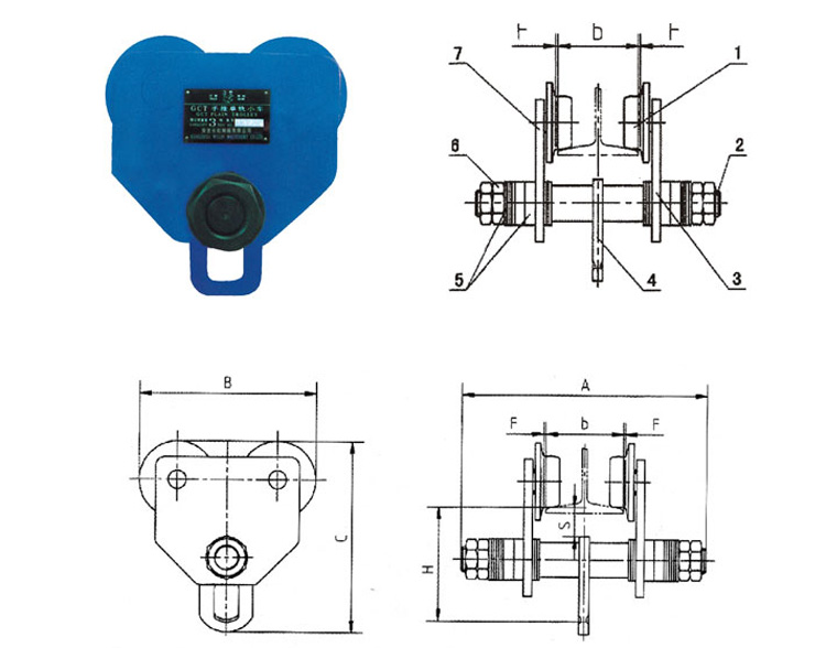武林GCT型手推單軌小車工作安全,維護簡易,結構緊湊,安裝尺寸小。車輪輪緣間距可按軌道寬度要求簡易調整,使用方便。車輪內采用滾動軸承設計,傳動效率更高,手推力小。車輪經過特殊設計的特殊形狀的踏面,使其能在1:6及1:6以下的斜軌面或平軌面上行駛。車輪的輪緣設計,能在較小曲率半徑的彎道上行駛。