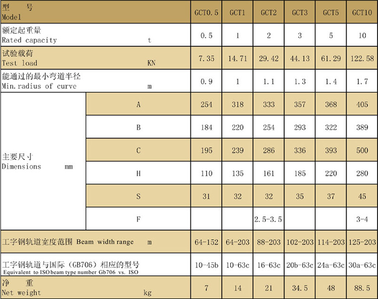 國產武林GCT型手推單軌小車與手拉葫蘆或其他的起重工具配合使用,安裝于工字鋼上,以手推起吊重物驅動,它具有結構先進、外形美觀、傳動效率高、手拉或受推力小等特點。廣泛地使用于工廠、礦山、碼頭、倉庫和機房等地安裝設備和裝卸貨物。尤其適用于無電源地點的設備維修工作。